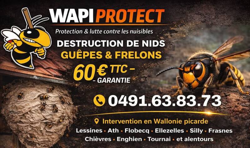 Wapi Protect intervient rapidement à Tournai pour la destruction de nids de guêpes et frelons.